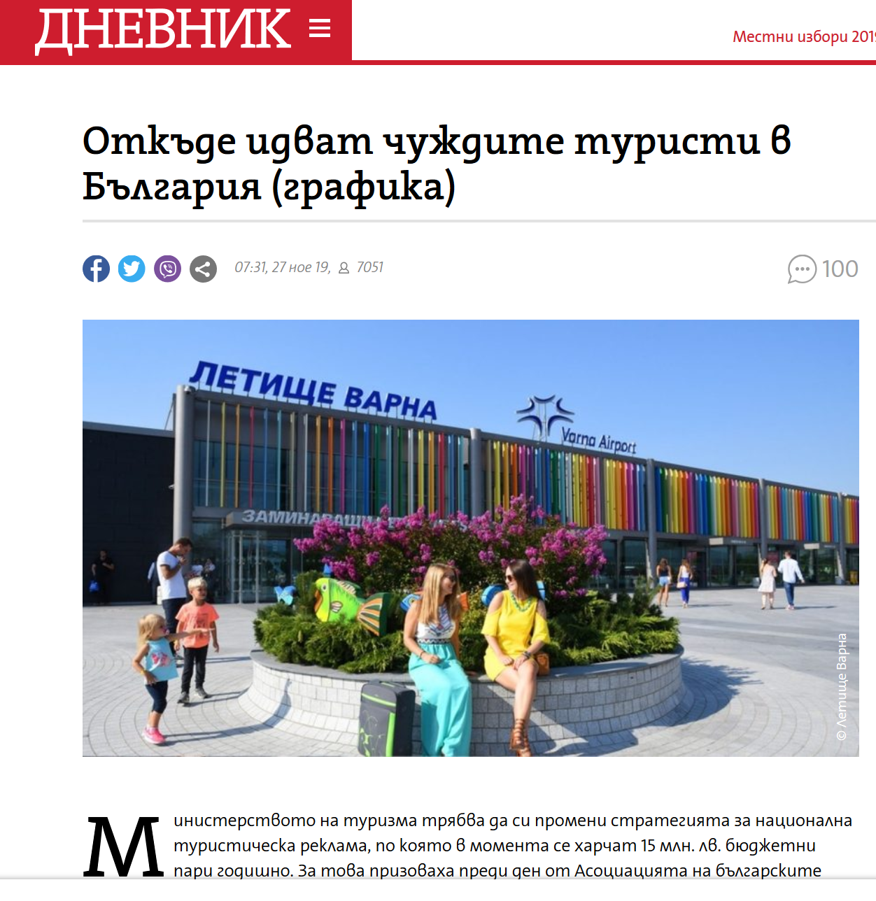Organizația a dat ca exemplu faptul că România, potrivit datelor INS de la sfârşitul lunii septembrie 2019, este pe locul doi ca număr de cazări şi cazaţi, iar asta fără niciun fel de „eforturi de marketing” din partea statului bulgar. În acelaşi timp, pe multe dintre cele mai puternice piețe, precum Germania și Rusia, se remarcă o scădere de ani de zile, în timp ce anul acesta e destul de mare – 23% pentru Germania și 15% pentru Rusia.