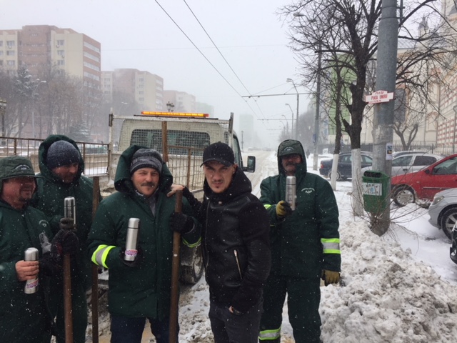 De asemenea, și agenții de la serviciul de salubritate – care, de asemenea, sunt nevoiți să se confrunte cu vremea rea pentru a-și desfășura îndatoririle și pentru a îmbunătăți calitatea vieților noastre – au primit termosuri cu lichide calde care să le facă ziua mai ușoară.