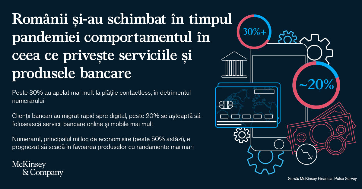 „Băncile, dar și alți jucători din domeniul financiar au acum ocazia de a-și îndeplini responsabilitățile sociale și de a fi alături de clienții lor, ajutându-i să își acopere nevoile în schimbare. Aceste instituții financiare ar trebui să dezvolte cele mai relevante produse, de exemplu, să identifice soluții de economisire sau refinanțare atractive pentru clienți. În egală măsură, acestea ar trebui să accelereze procesele de digitalizare și să se orienteze și mai mult pe noile tehnologii. Băncile pot avea un rol esențial în ghidarea consumatorilor către redresarea economică, în timp ce se reinventează ca organizații”, a concluzionat Managing Partnerul biroului din București și lider al Digital & Analytics Practice în Europa Centrală al McKinsey & Company.