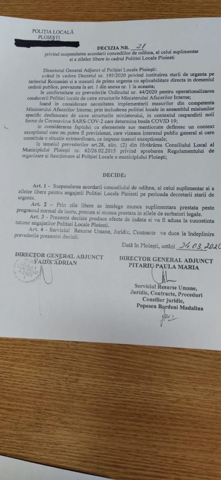 In contextul in care, conducerea profesionala a IPJ Prahova a scos pe „teren” intreg efectivul de care dispune pentru combaterea raspandirii noii forme de Coronavirus SARS-COV-2, care determina boala COVID-19, inclusiv pe cei din birouri precum cei din contabilitate, managerul Politiei Locale Ploiesti a dat dovada profesionalismului sau total care „este dar… lipseste cu desavarsire”.