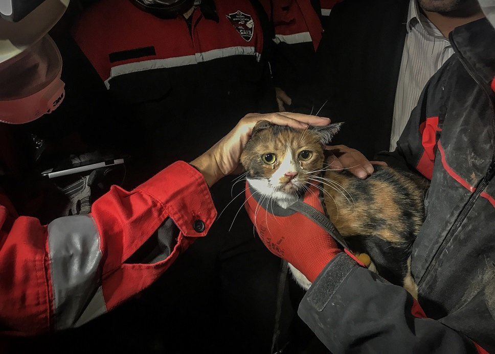 Pisica a fost salvată la aproximativ 30 de ore după seism dintre rămășițele clădirii cu două etaje.