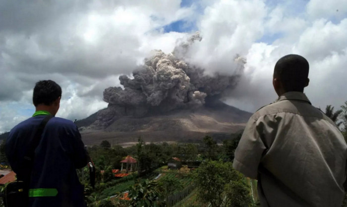 Erupţie de amploare în vestul Indoneziei. Din muntele vulcanic Sinabung au ţâşnit jeturi de lavă, iar coloane de fum de până la trei kilometri s-au ridicat în aer!