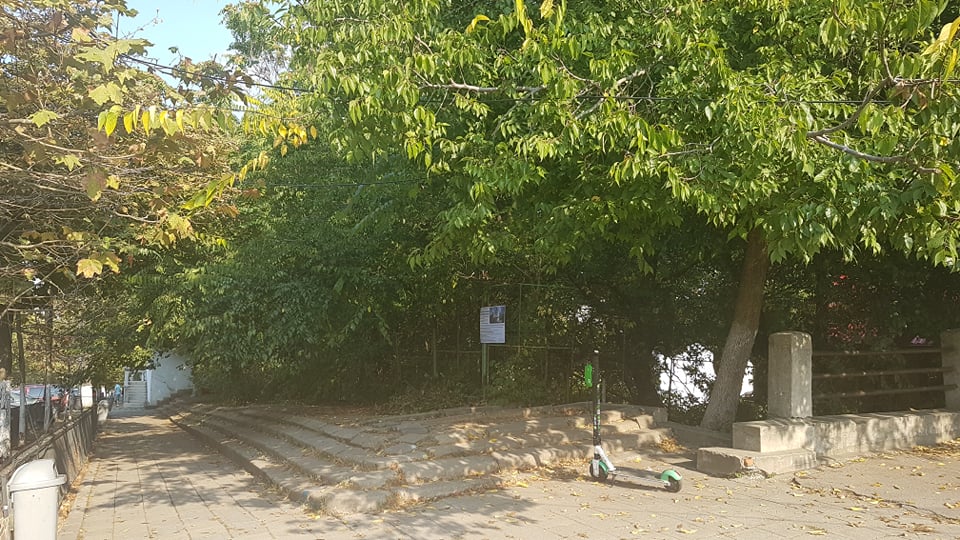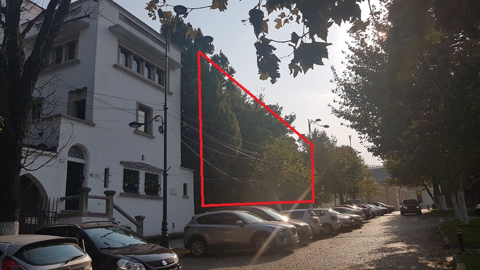Pe teren se află mai mulți copaci, iar în spate, la câțiva metri, o constructie de peste 100 de ani. Noua construcție ar urma să se construiască în fața ei.
