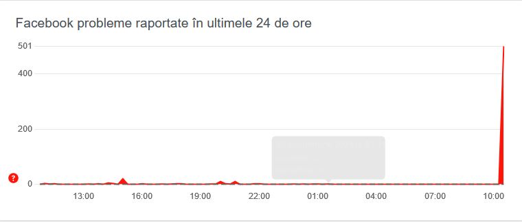 Downdetector, site care monitorizează problemele de funcționare a mai multor site-uri importante, a înregistrat vineri dimineața o creștere vertiginoasă a numărului de reclamații privind probleme legate de Facebook.