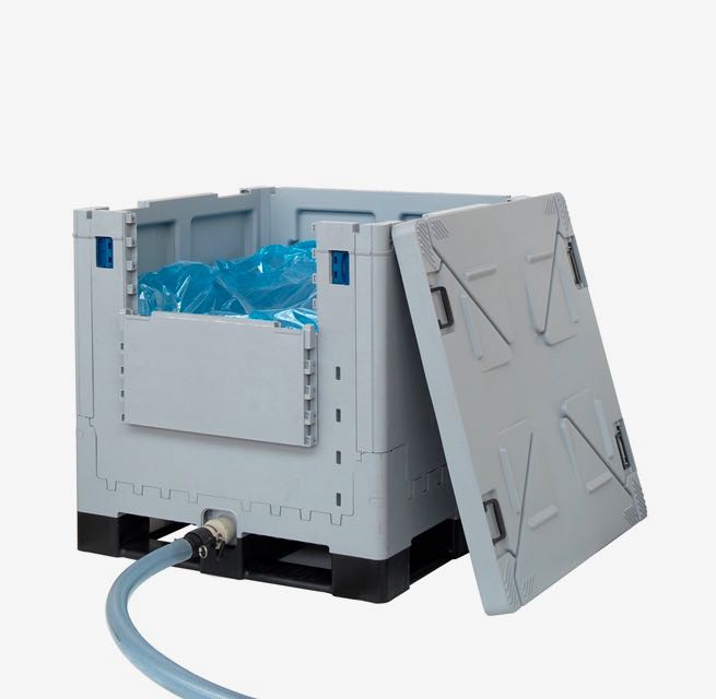 Acesti saci din plastic, pot fi incarcati in containerele de la Schoeller Allibert si manevrati cu usurinta pentru a fi depozitati sau transportati mai departe la destinatie.