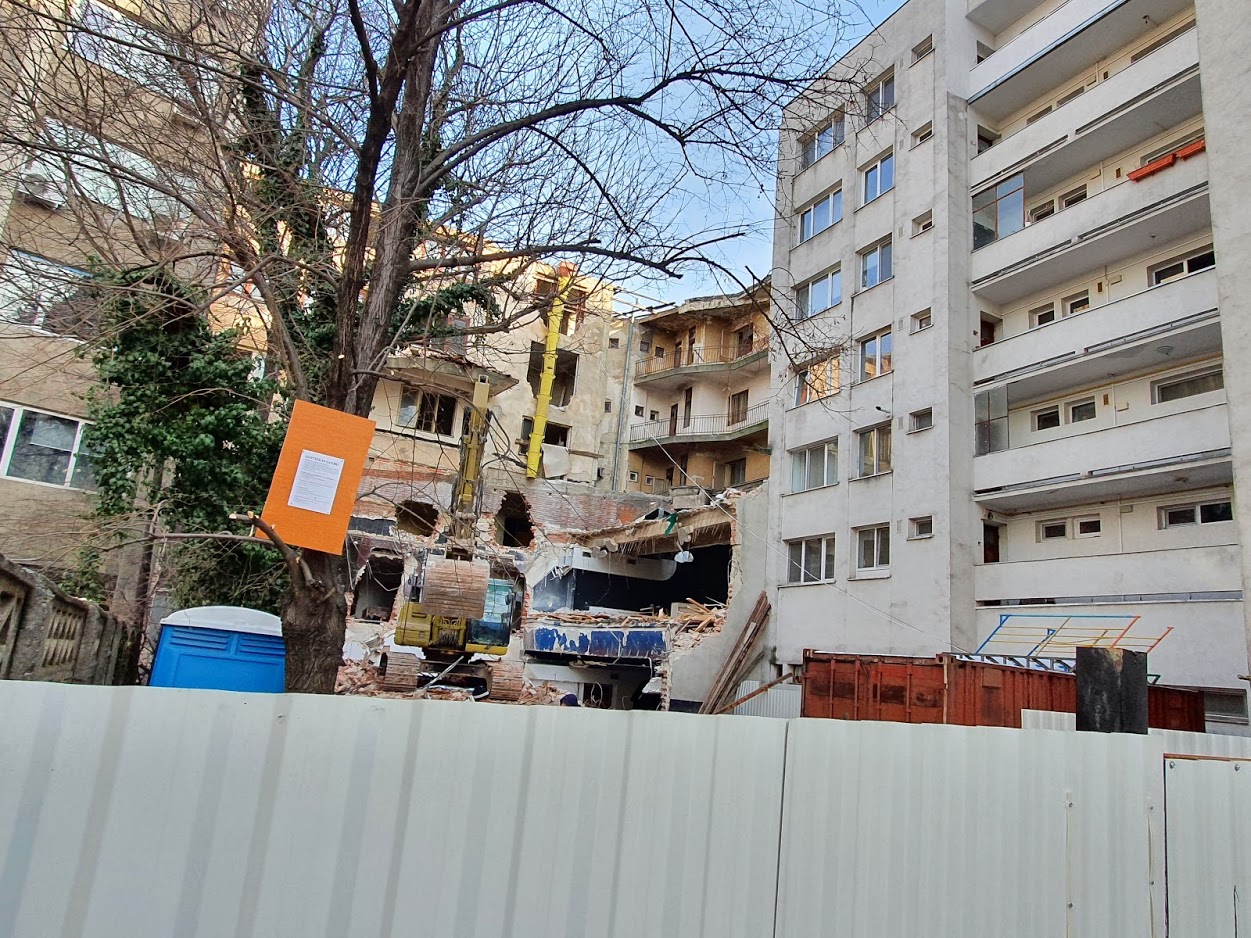 Documentul arată că imobilul se află într-o stare avansată de degradare, iar soluția este demolarea structurii de rezistență și construirea uneia noi, din vechiul imobil fiind păstrate doar fațadele.