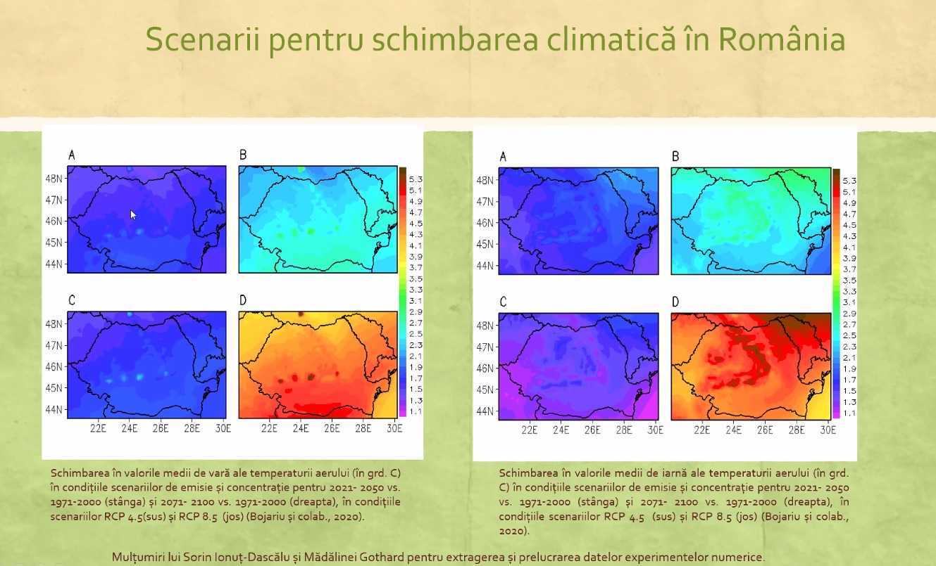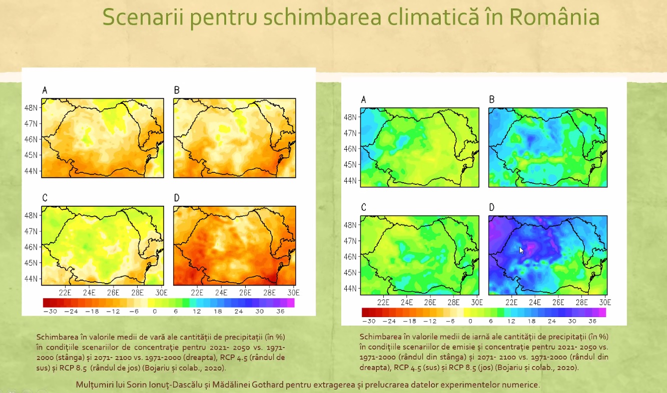 „Toate scenariile arată o scădere a precipitațiilor în lunile de vară, chiar dacă cu magnitudine diferită în funcție de scenariu, de generația de modele folosită și o creștere a temperaturii cu un maxim de creștere în luna august, de exemplu”, a precizat Bojariu.