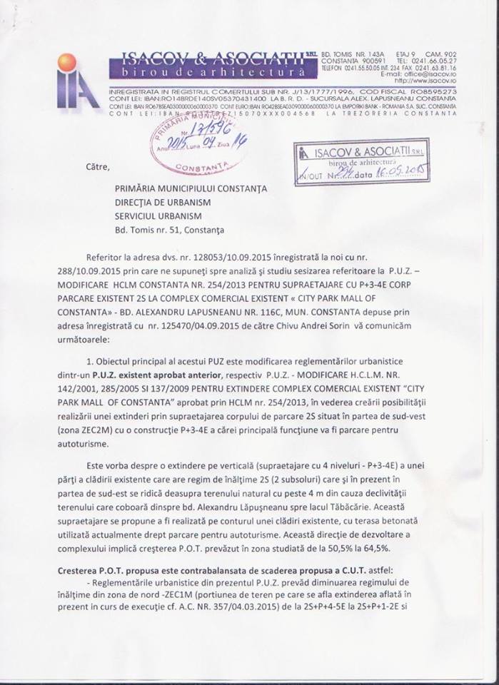 Iar ce a de a doua supriză a constituit faptul că doamna Soare mi-a înmânat răspunsul petiţiei mele sub semnatură, răspunsul fiind redactat de biroul de proiectare Isacov care are un interes economic direct în această poveste, într un cuvânt, aşa cum bine vă daţi seama nu reprezintă interesele cetăţenilor.