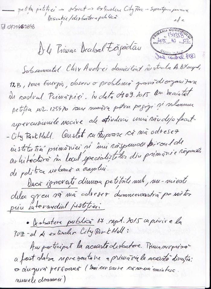 În consecinţă am redactat astăzi petiţia petiţiei în care prezint părerea mea în urma dezbaterii publice şi a dispreţului edililor faţă de problemele noastre.