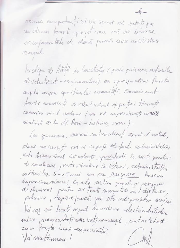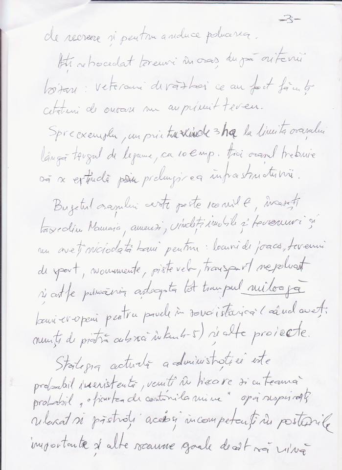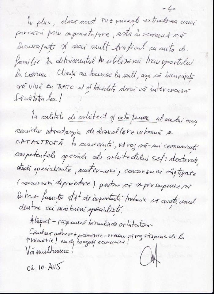 Reclam strategia urbană de dezoltare – catastrofală – în calitate de cetăţean şi arhitect i-am solicitat primarului interimar să-mi aducă la cunoştinţă recomandările profesionale deosebite ale arhitectului şef care îl recomanda petru acest post cu mare responsabilitate: doctorat, studii master, premii la concursuri de proiectare, experienţa profesională temporară în Europa sau în alte state dezvoltate.