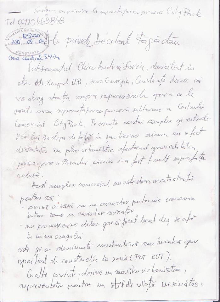 Bineînţeles ca am luat atitudine şi am redactat o petiţie pentru Primărie în care am explicat edililor într-un rezumat de patru pagini toate repercusiunile nocive ale acestei construcţii, implicit ale extinderii – aspecte evindente, dar la noi la Constanţa axiomele trebuiesc demonstrate edililor…