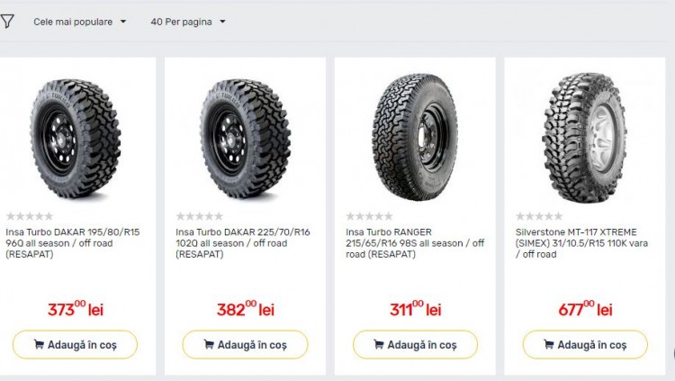Acum găsești o mulțime de modele și variante de anvelope off road și jante aliaj pe autolucas.ro! Te întrebi unde ai putea găsi anvelope off road all season? Ai atâtea modele din care poți alege și toate acestea le găsești pe un singur magazin online dedicat pieselor de mașină și accesoriilor necesare perfecționării acesteia și punerii în funcțiune! Autolucas.ro este renumit pentru gama largă de modele anvelope off road all season pe care le are disponibile, dar în același timp se remarcă și prin calitatea produselor pe care le oferă. Calitate care, trebuie să ții minte asta, vine la pachet cu profesionalismul și seriozitatea echipei care se află în spatele autolucas.ro! Gânâdit în așa fel încât să se plieze pe mai multe gusturi ale proprietarilor, dar și pe tot ceea ce înseamnă mașină, autolucas.ro excelează la partea de anvelope off road, jante aliaj, covorașe auto, tăviță portbagaj, huse scaune, prelata auto, bare transversale, paravânturi, cutii portbagaj și chiar suporturi pentru biciclete.