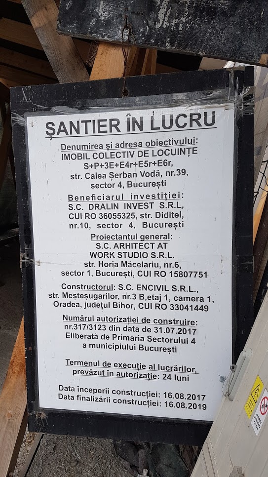 ”La adresa Calea Șerban Vodă nr. 39 din Sectorul 4, București, sunt în curs de executie lucrări de construire a unui ,,Imobil colectiv de locuințe S+P+3E+E4r+E5r+E6r…”, pentru care Primarul Sectorului 4 al Municipiului Bucureşti a emis Autorizaţia de Construire nr. 317/3123 la data de 31.07.2017. În conținutul autorizaţiei de construire se menţionează: „Distribuția funcţională pe nivele a clădirii colective de locuinţe este: (…) la etaj 5: scara exterioară metalică, hol etaj 5, lift pentru persoane şi un apartament duplex cu supantă de 4 camere; la etaj 6: scară exterioară metalică, hol etaj 6, lift pentru persoane şi un apartament duplex cu supantă de 4 camere”, se arată în răspunsul transmis de ISC în 2019.