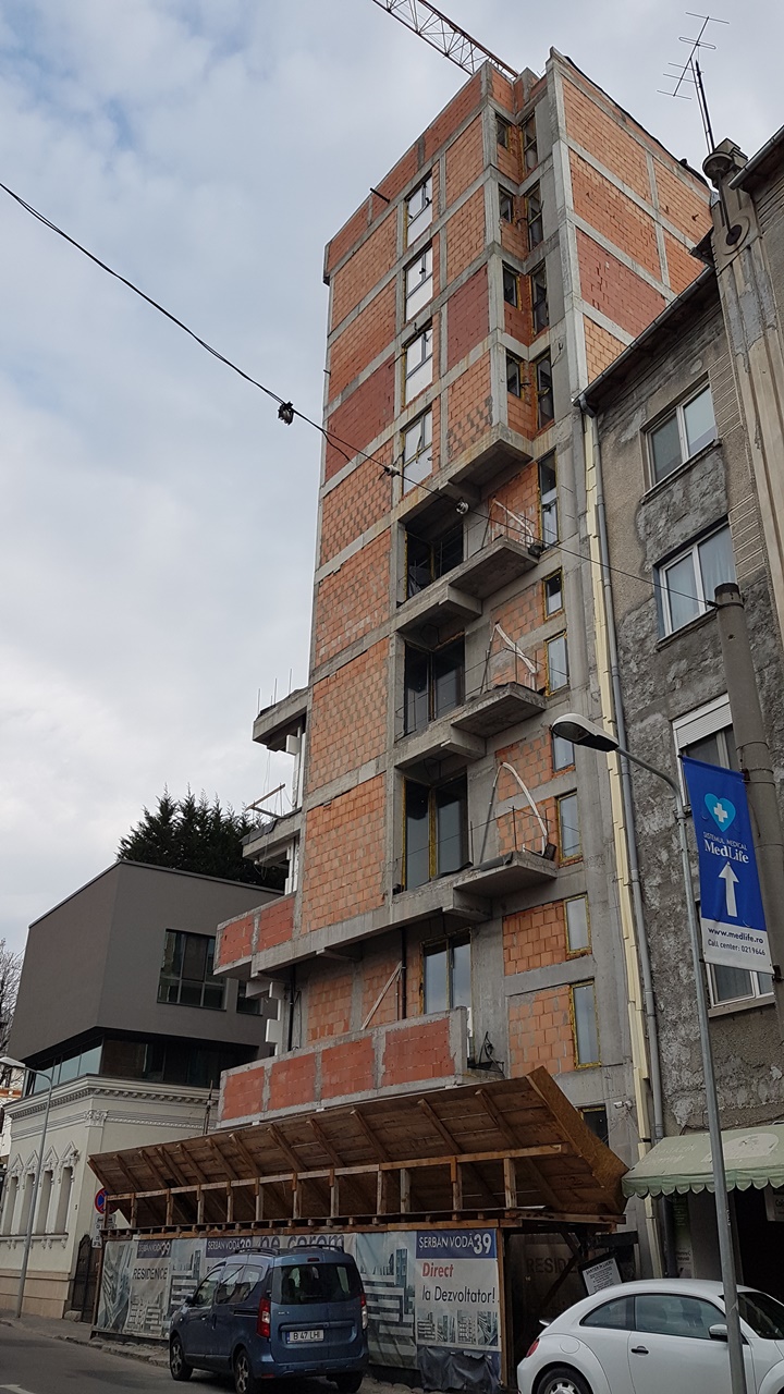 Tribunalul București a anulat autorizația de construire pentru blocul de pe strada Șerban Vodă nr.39 care obținut autorizație de construire pentru 6 etaje, dar s-au construit 8, pe motiv că ultimele 4 etaje sunt duplexuri și se consideră un duplex drept un etaj. Procesul a fost intentat de vecinii care s-au trezit cu ditamai blocul la fereastră. Decizia poate fi atacată cu recurs.
