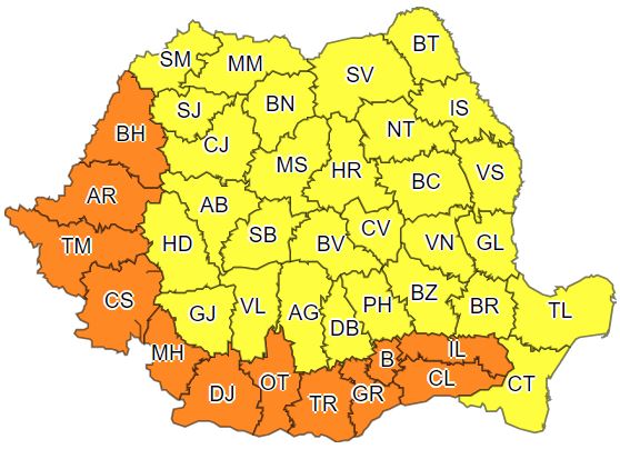 Canicula se va extinde în toată țara vineri, anunță Administrația Națională de Meteorologie, care a emis un cod portocaliu pentru 12 județe din sudul și vestul țării și un cod galben pentru restul județelor.