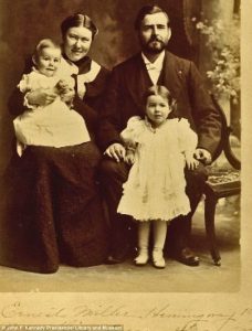„Ernest Hemingway și-a petrecut mai bine de treizeci de ani în lumina reflectoarelor, ca cea mai mare celebritate a Americii. A fost supraviețuitor în cinci războaie, patru accidente de mașină și două prăbușiri cu avionul”. Primele tușe schițate de scriitorul Robert Schnakenberg în cartea sa, „Viața secretă a marilor scriitori (Editura Art, 2017), lasă să se întrezărească portretul unui Hemingway despuiat de culorile oficiale. Întruchipare a virtuții masculine ca adult, scriitorul a intrat în viață ca o fetiță! „Excentrica mamă a lui Hemingway și-a dorit atât de mult o surioară geamănă pentru fiica ei mai mare, Marceline, încât îl îmbrăca pe micuțul Ernest în haine de fată, îl tundea ca pe o fetiță și îl prezenta vecinilor ca pe «fiica» ei Ernestine”, menționează Robert Schnakenberg.
