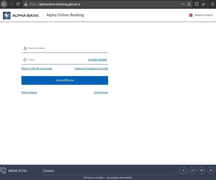 Hostname-urile (numele de domenii) utilizate de către atacatori pentru paginile de phishing seamănă cu URL-urile legitime ale platformelor de online banking.