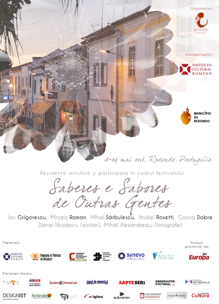 În perioada 19 – 29 mai 2016, cu ocazia Festivalului “Saberes e Sabores de Outras Gentes” din Redondo, Portugalia, se va desfășura, în cadrul proiectului Contemporanii, o rezidență artistică organizată în parteneriat cu Institutul Cultural Român din Lisabona și Centrul Cultural Redondo. Alaturi de România se vor alătura festivalului reprezentanți din mai multe țări printre care China, Marea Britanie, Republica Capului Verde, Brazilia, Tunisia, Belgia, Olanda, etc