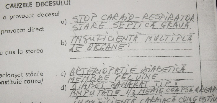 Omul acela, care se mai prezentase, fără ambulanță, cu 10 zile înainte la Județean, la Urgență, unde fusese diagnosticat cu o răceală și fusese trimis acasă, avea acum bronho-pneumonie. Numai că în loc să îl interneze pe loc și să demareze efectuarea tratamentului adecvat, doctorul reumatolog Relu-Liviu Crăciun și echipa de la UPU din noaptea respectivă s-au cramponat de faptul că pacientul avea piciorul drept amputat și două degete de la piciorul stâng amputate. Fără urme de infecție, pentru că în ziua respectivă pacientul fusese vizitat la domiciliu de medicul de specialitate, chirurgul care îl operase, care i-a curățat în fiecare săptămână locurile amputate.