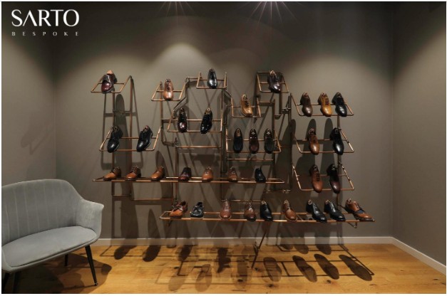 Acest showroom se caracterizează printr-un design nonconformist și a fost creat pentru a expune pantofii, gențile și accesoriile Loake Shoemakers, brandul englezesc ce pune în valoare ținutele croite cu măiestrie la SARTO bespoke. Rafturile din cupru sunt un melanj de simplitate și sofisticare, două atribute aparent contradictorii, însă care constituie esența bunului gust masculin. Aceste instalații complexe au fost realizate manual chiar de membrii echipei SARTO, care și-au asumat provocarea de a construi mai multe piese identice, la o precizie milimetrică.