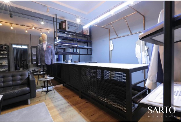 Showroom-ul din Maior Gheorghe Sonțu, București, a fost recent reamenajat conform tendințelor și viziunii ce face brandul să fie unic și să se diferențieze în industria modei masculine pe plan local. Creatorii brandului și-au adus aportul personal, contribuind nu doar prin imaginație și viziune, ci și prin execuția unor piese unice de mobilier, manufacturate chiar la sediul SARTO.