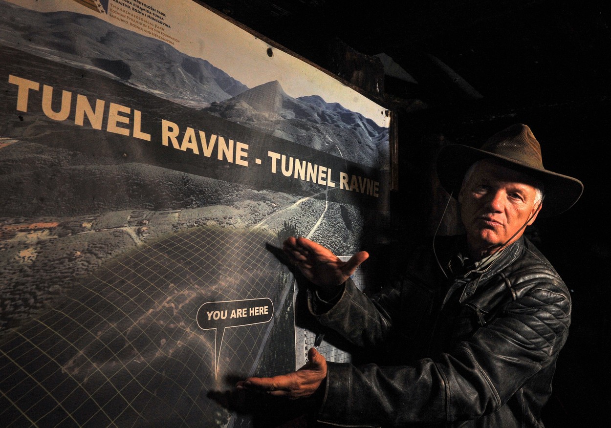 Bărbatul cumpără pământ în apropiere, curăță galeriile subterane și își crează ceea ce numește „Fundația Piramidei Bosniece a Soarelui”.