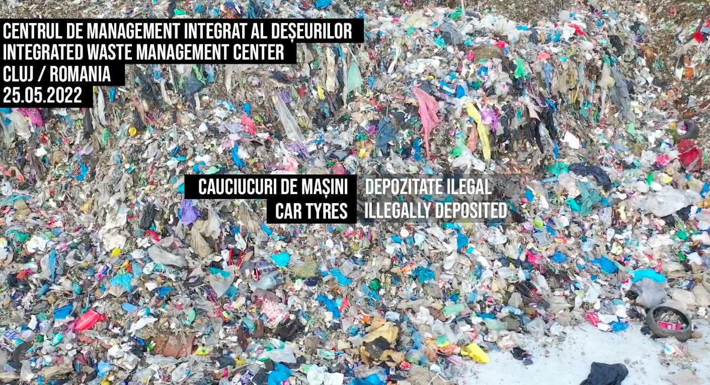 Problemele cu depozitarea și colectarea gunoiului în Cluj-Napoca n-au apărut peste noapte. Istvan Szakats merge periodic să filmeze cu drona, în zona depozitului, și surprinde cauciucuri, saltele sau saci cu moloz. Toate astea sunt materiale neconforme, care n-au ce căuta acolo, potrivit legii.