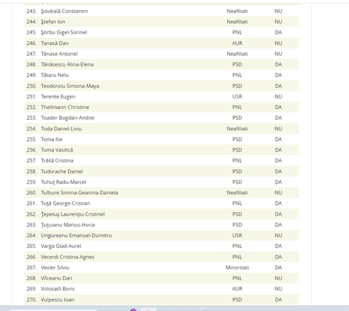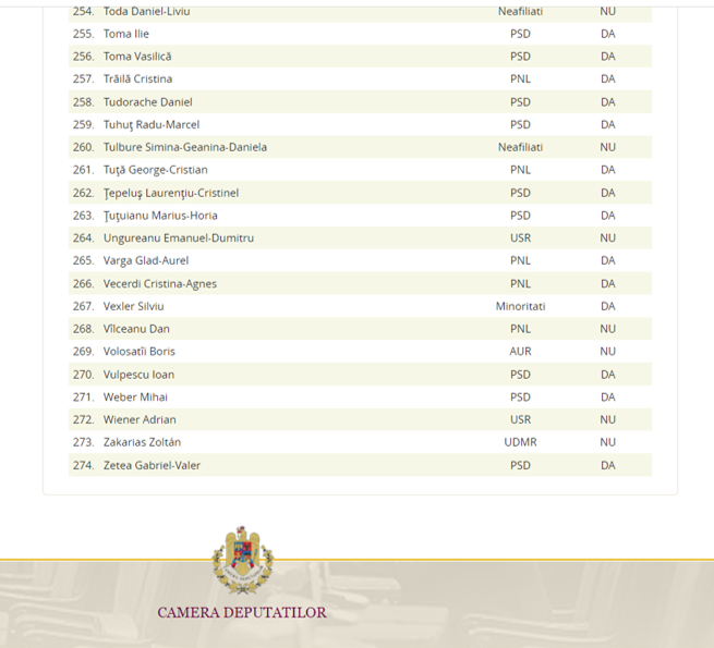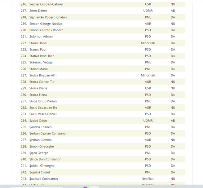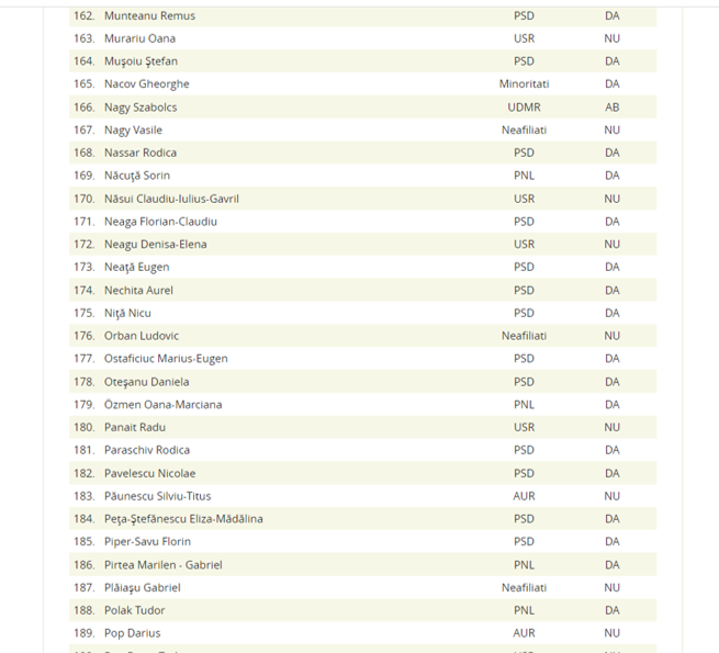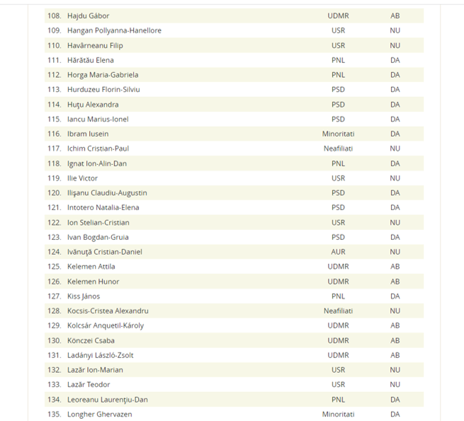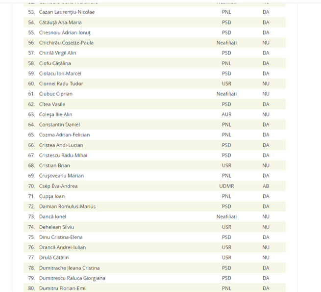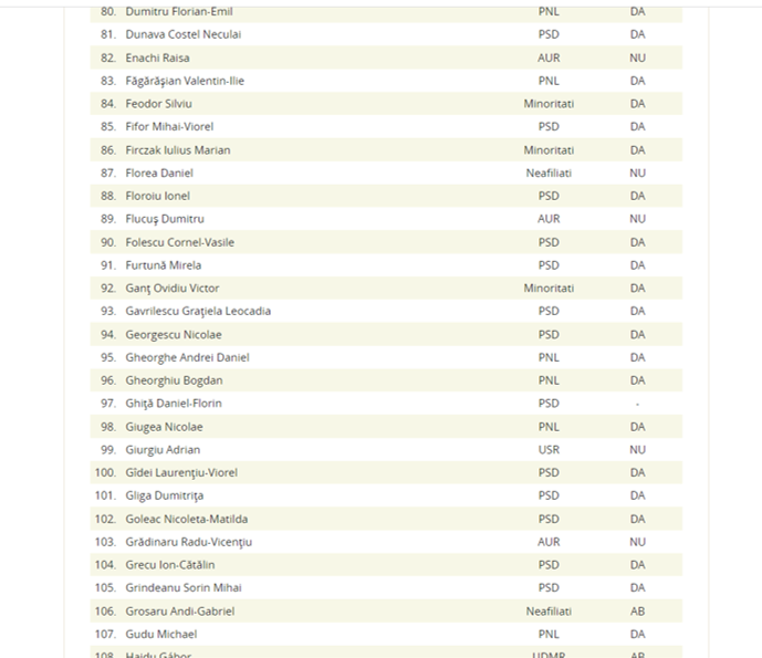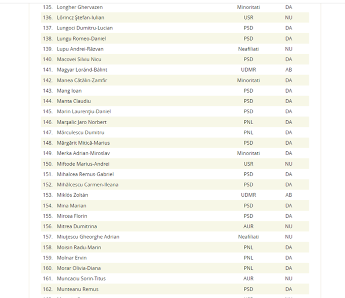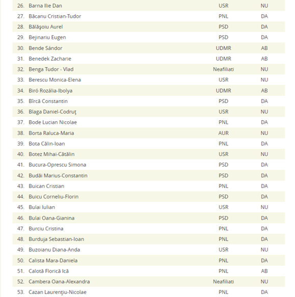 S-au abținut cei de la UDMR iar restul celor 71 aleși care au votat împotrivă sunt: