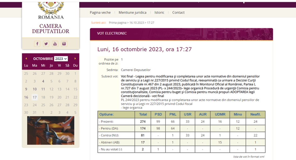 Observăm că toți aleșii PSD și PNL au votat PENTRU adoptarea proiectului de lege în forma care se poate consulta mai sus, deși tot ei ne asigurau că nu se vor atinge de polițiști și militari. Un singur deputat liberal, Vîlceanu Dan, a votat împotriva proiectului de lege.