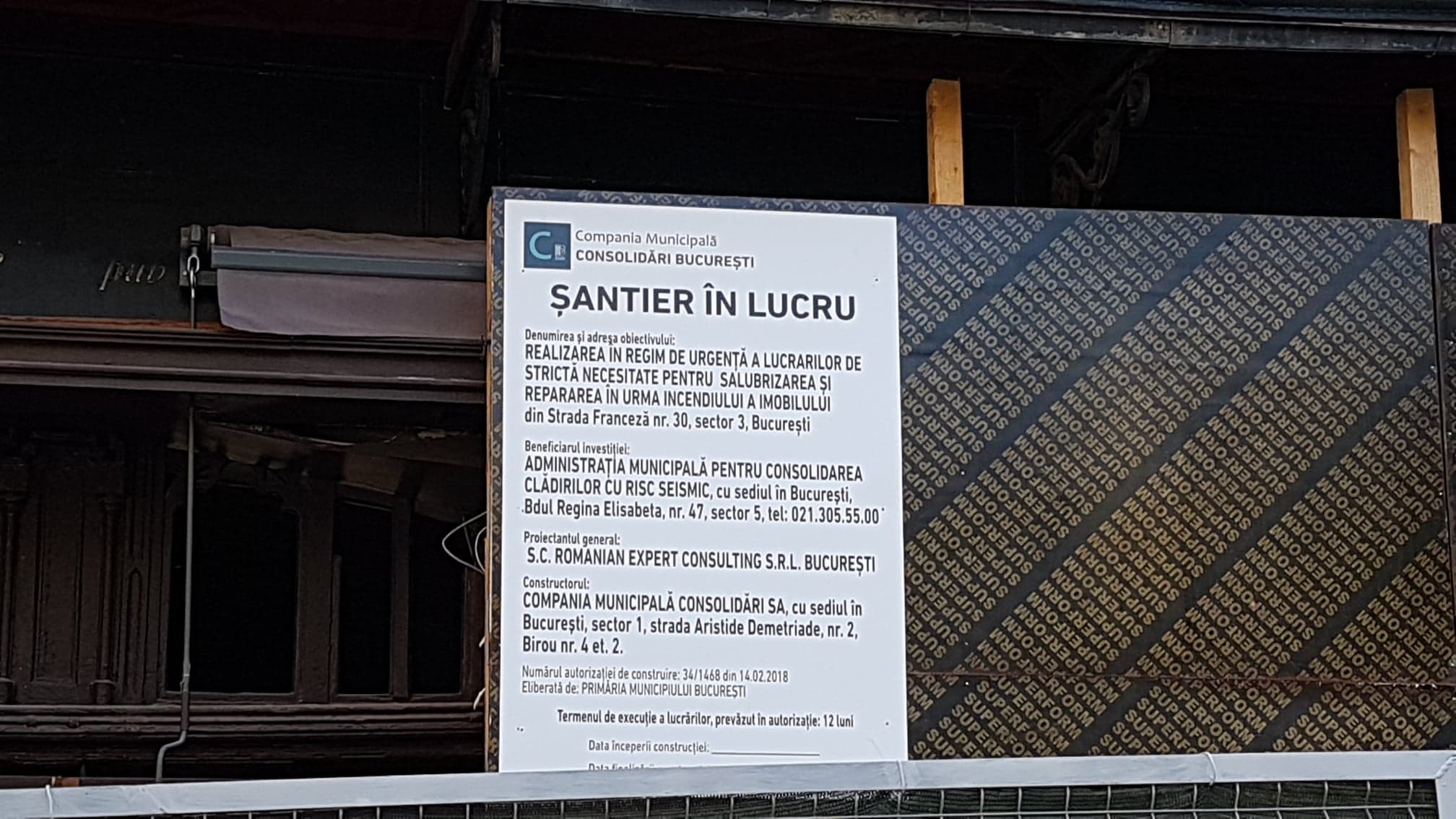 Pentru consolidarea clădirii de pe strada Franceză nr. 30, Administrația Municipală pentru Consolidarea Clădirilor cu Risc Seismic a încheiat cu Compania Municipală Consolidări contractul nr. 31 din 15 februarie 2018 pentru ”Consolidarea imobilului de locuințe din strada Franceză 30”. Valoarea acestuia era de circa 6,7 milioane lei, iar termenul de execuție 24 de luni. Contractul a fost majorat prin 4 acte adiționale, iar valoarea sa a crescut cu aproape 50%: