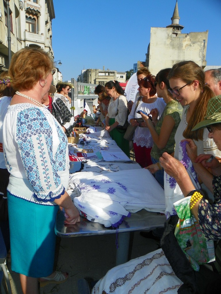 Îmbrăcate în cămăși românești brodate, fetele de la șezătoare și atelier le-au arătat celor prezenți cum se lucrează o ie și ce reprezintă motivele cusute pe pânză. În mod special, unul din punctele de interese l-a constituit  prezentarea iei dobrogenăe, cu motivele sale specifice.
