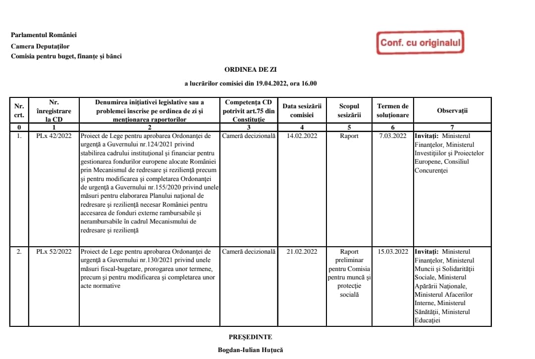 Azi, Comisia pentru buget, finanțe și bănci din Camera Deputaților, va avea pe ordinea de zi Proiectul de Lege pentru aprobarea Ordonanţei de urgenţă a Guvernului nr.130/2021 privind unele măsuri fiscal-bugetare, prorogarea unor termene, precum şi pentru modificarea şi completarea unor acte normative prin care trebuie să se aplice legea salarizării nr. 153/2017 și în cazul polițiștilor.