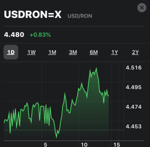 Leul a continua să se deprecieze. Maximul atins astăzi pe piața valutară a fost de 4,873 lei pentru un Euro, iar BNR a raportat la ora 13.00 cursul de 4,8440 lei. Deprecierea nu este pentru că leul a rezistat, ci pentru că Euro (și leul) s-au depreciat față de ,,king dollar” cu aproape 2%. Cursul de la BNR al dolarului a fost 4,4864 lei, față de 4,4027 lei. Asta arată că piețele văd mai eficiente politicile americane, prin care populația este țintită, față de cele europene. Politicile reale economice în România nu există. Și încă ceva: întrărirea semnificativă a dolarului funcționează ca un indicator de avertizare timpurie pentru instabilitate financiară în țări emergente sau aspirante la emergență, cum este România: