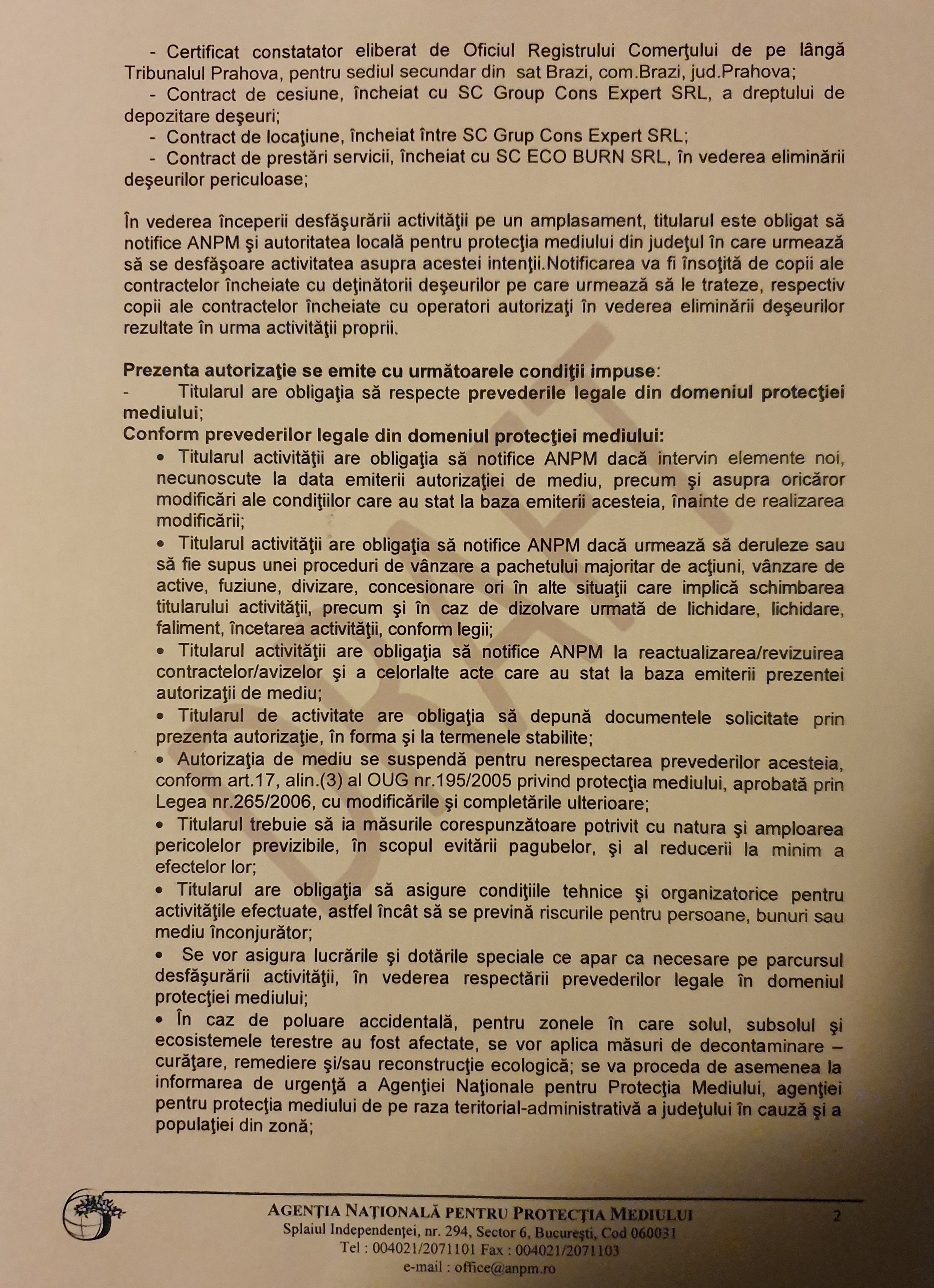 Astazi vom face referire doar la Autorizatia de Mediu din 2012, in care reprezentantii acestei firme au solicitat sa desfasoare urmatoarelor activitati: