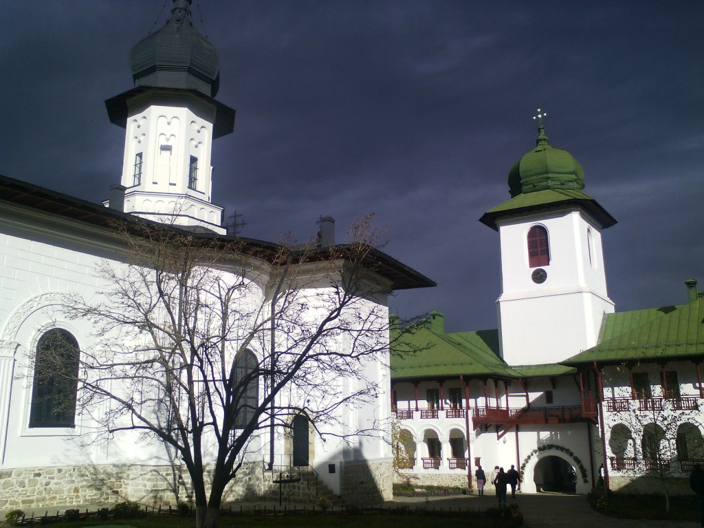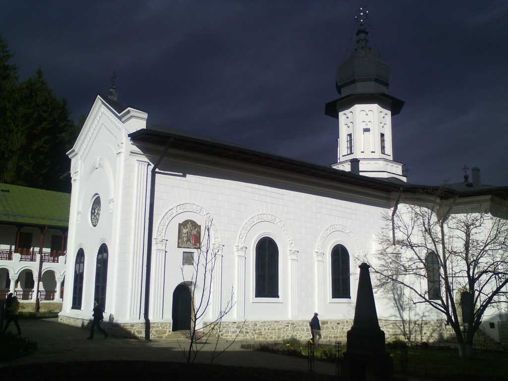 Marturie la aceasta intamplare imi stau chiar fotografiile in care puteti vedea cat de negru era cerul  si cat soare era in curtea bisericii. Astfel lumina ce penetra plumburiul norilor, dadea manastirii un alb imaculat precum mantia alba a lui Cristos. Imaginile pot vorbi de la sine !… Apoi am aflat ca acolo se afla in fatza altarului, chiar ICOANA FACATOARE DE MINUNI A MAICII DOMNULUI.