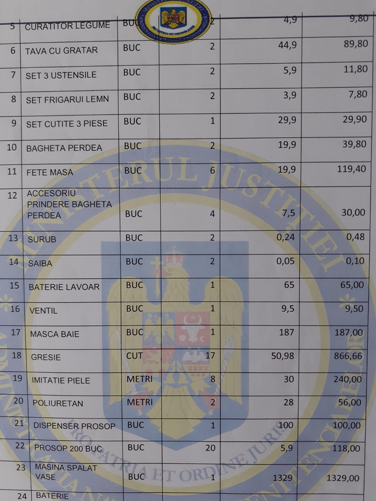 Penitenciarul a achiziționat doar 24 buc în data de 27.07.2019, la prețul de 6,12 lei ?