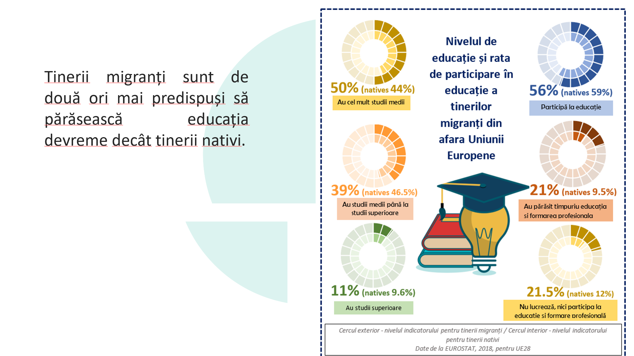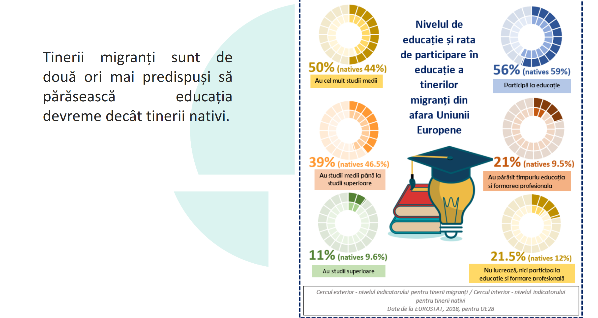 ”Legat de integrarea în procesul educațional observăm că există diferențe în ceea ce privește educația, dar acestea nu sunt însă atât de mari astfel încât ei să nu poată fi integrați din acest motiv. În cazul migranților avem o pondere de 11 la sută migranți cu studii superioare față de 9 la sută, procentaj în cazul celor nativi. De asemenea diferențele nu sunt extrem de grave nici în ceea ce privește celelalte niveluri de studii”, consideră Monica Roman