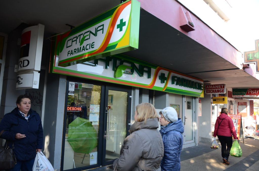Această farmacie, deschisă la o adresă din cartierul brașovean Astra, funcționează în baza unei autorizații cumpărate de Catena de la Silviu Constantinescu cu 40.000 de euro, în aprilie 2012. FOTO: RISE Project.