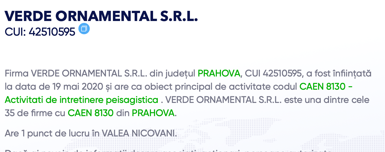 Conform informațiilor publice, SC Verde Ornamental SRL a fost înființată în plină pandemie, în data de 19 mai 2020. Peste două săptămâni de la înregistrarea firmei semnează cu CSM Ploiești contractul pentru asigurarea mentenanței gazonului de pe stradionul Ilie Oană. Contractul a fost atribuit direct, fără nicio procedură transparentă și fără nicio altă explicație. În mod normal, un astfel de contract (câteva zeci de mii de euro anual) ar trebui încredințat unei firme cu o experiență relevantă în domeniu, cu recomandări venite de la clienții anteriori, dar în cazul SC Verde Ornament SRL nu a fost nevoie de astfel de documente.
