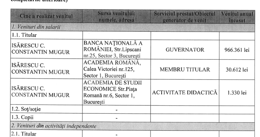 Viata de Guvernator a fost mereu minunata pentru Mugur Isarescu. N-a stat el niciodata in salariu…