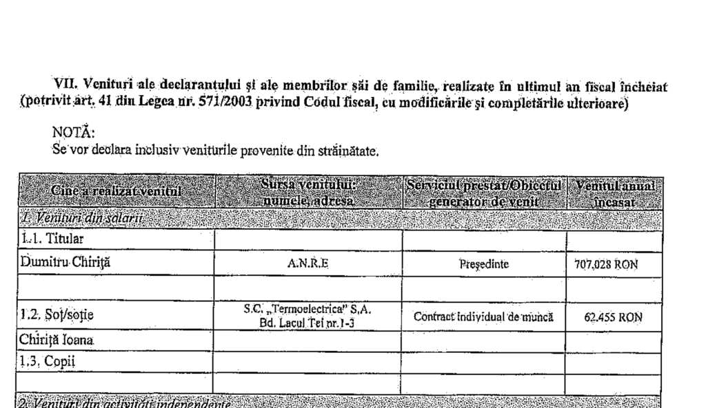 Dumitru Chirita e seful Autoritatii Naţionale de Reglementare în domeniul Energiei, calitate din care ia, tineti-va bine, 12 000 de euro pe luna, adica incaseaza intr-o luna salariul pe doi ani al unui roman care primeste salariul minim pe economie. In plus, asa cum veti observa, domnul Chirita e foarte strangator. Are aproape un sfert de milion de euro in conturi.