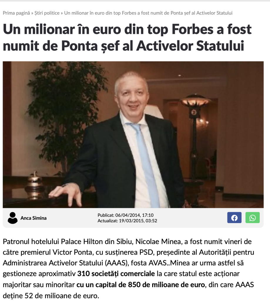 O alta sugativa nesatula din CA-ul Transgaz este milionarul sibian Nicolae Minea. Omul asta e sinecurist din timpuri stravechi, mereu a avut un interes special pentru pozitii cheie in companii de stat cu potential: