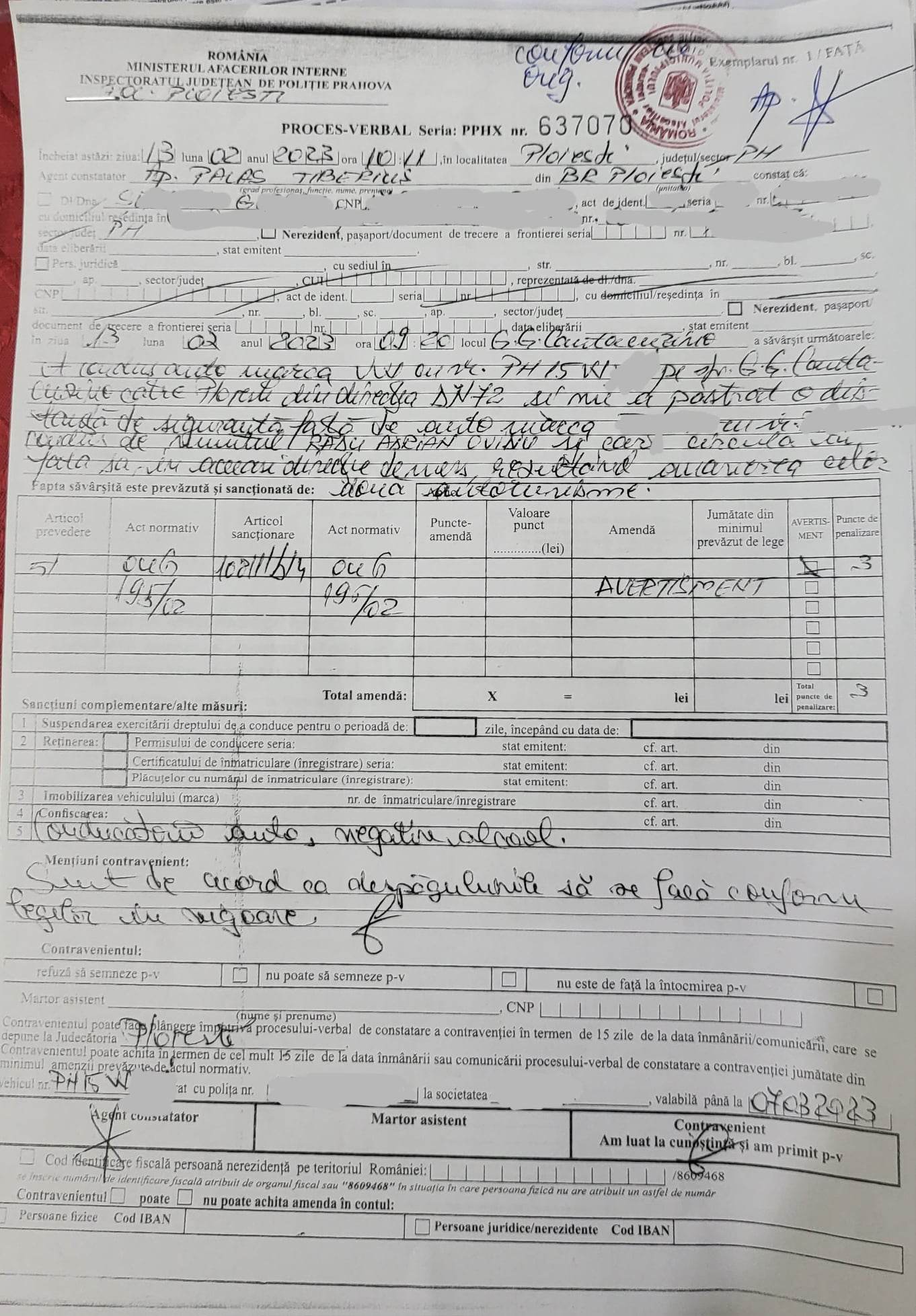 Contrariat, jurnalistul nostru s-a deplasat la Biroul Rutier Ploieşti, pentru a raporta incidentul. Contrariat a fost deaorece nimeni nu ar risca sa nu incheie conventie amabila riscand sa ramana cu permisul suspendat.