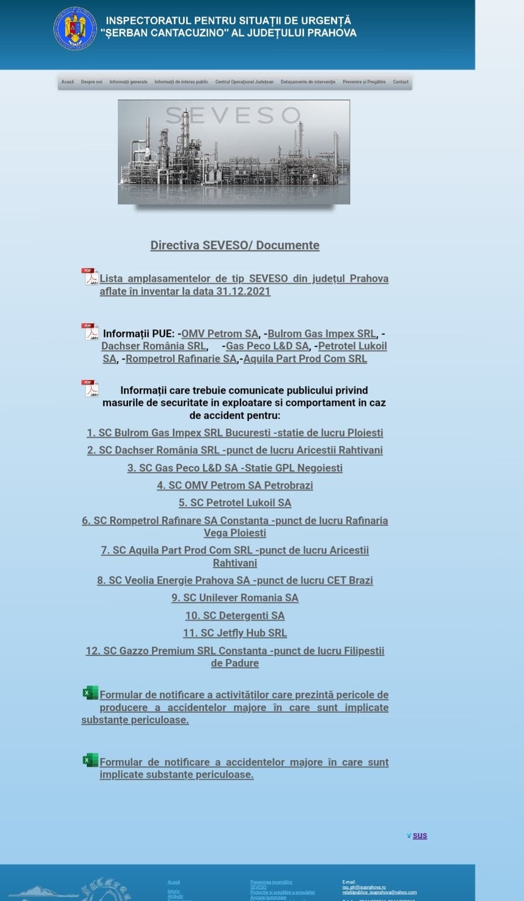 Pe site-ul oficial al Inspectoratului pentru Situații de Urgență “Şerban Cantacuzino” al judetului Prahova se regaseste, MARE, Directiva SEVESO.