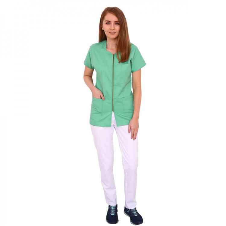 Halatul medical cu fermoar este o uniforma medicala moderna din bumbac, potrivita pentru lucrul in orice institutie medicala, precum si in laboratoare, firme de catering etc. Modelele de halate medicale cu