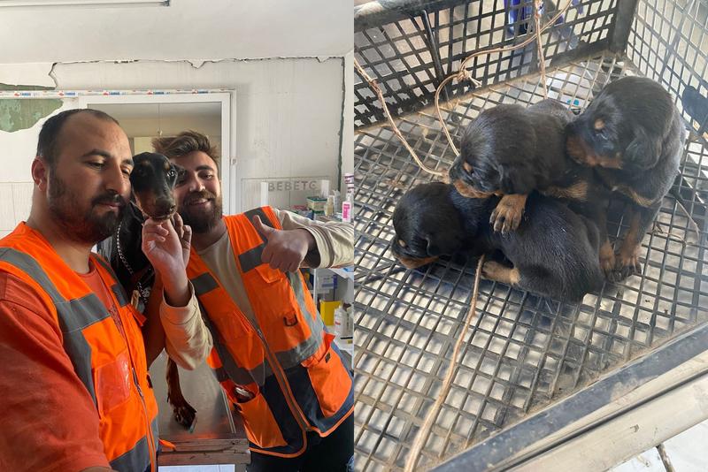 O cățelușă și trei pui nou-născuți au fost salvați de sub dărâmături la o lună de la cutremurul devastator din TurciaFoto: Angels Life Village Association/ / AFP / Profimedia