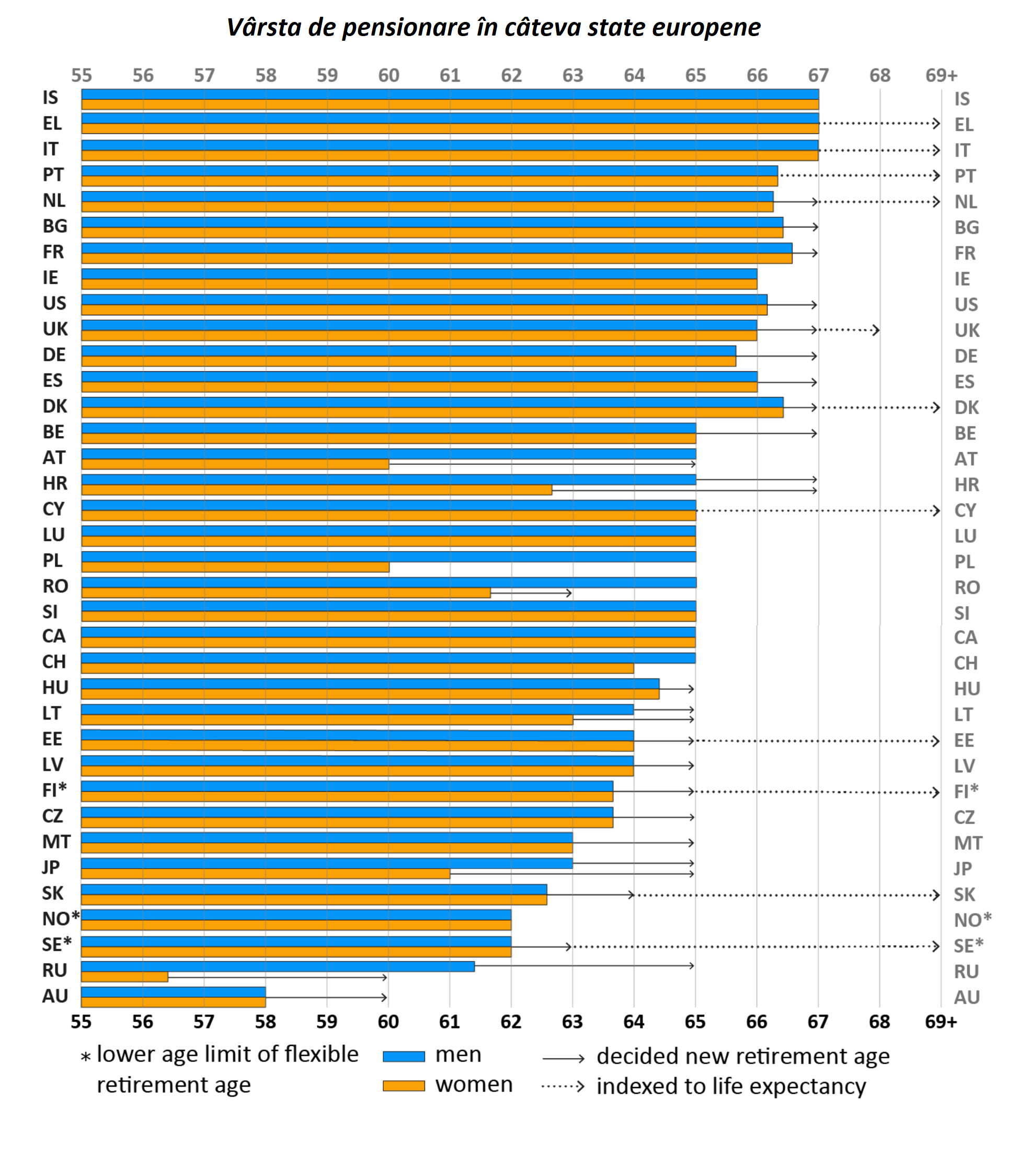 În tot mai multe țări, vârsta de pensionare este legată de speranța de viață. Pe lângă Finlanda, acest mecanism este funcțional în Cipru, Danemarca, Estonia, Grecia, Italia, Țările de Jos, Portugalia și Slovacia. La fel, britaniii vor și ei să adopte acest mecanism. Modificarea vârstei de pensionare e programată să aibă loc între 2020 și 2030.