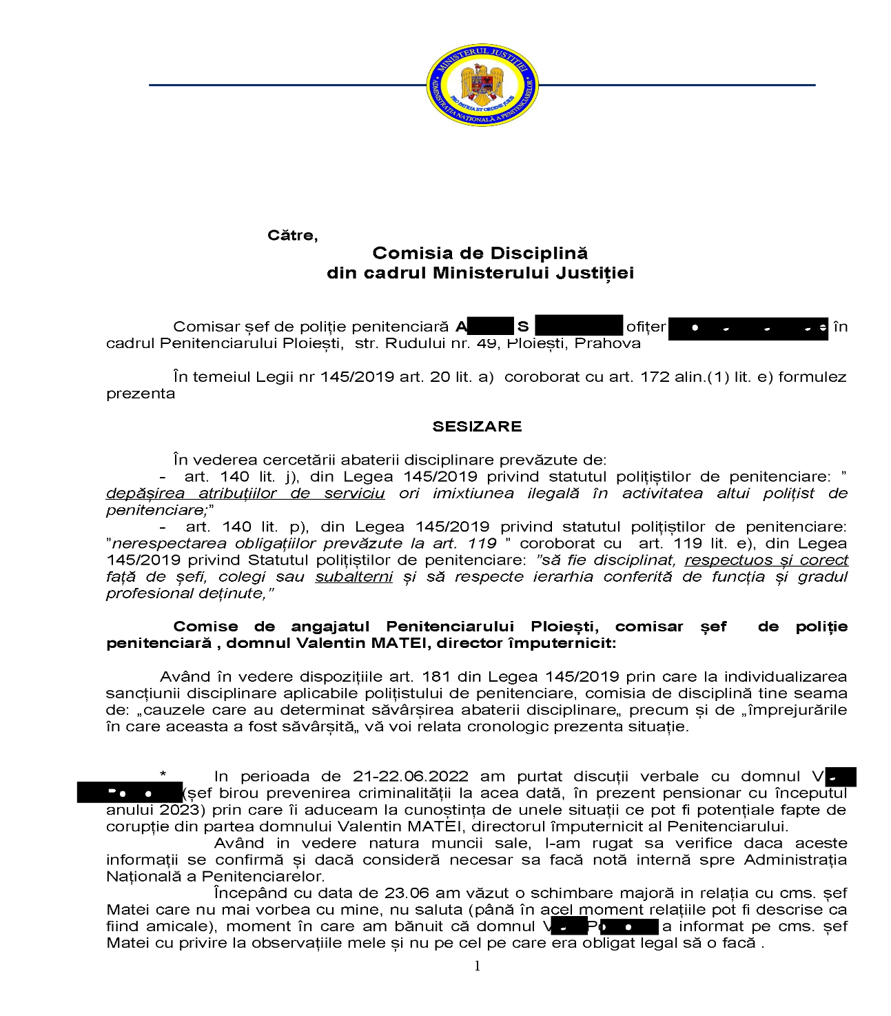 Am fost surprinși ca si in după atâtea dovezi si articole fundamentate, INCA cineva îl mai susține in războiul lui cu dreptatea, echidistanta si respectul…dar… poate lucrurile se vor schimba si in Ministerul ce se lauda ca se ocupa cu JUSTITIA. Spunem asta caci cei din Comisia de disciplina a M.J-ului sunt mânjiți pe bot de miere sau senilitate. Pentru a nu mai povesti ce deja este scris in materialul următor, citiți si apoi sa ne miram împreuna!!!